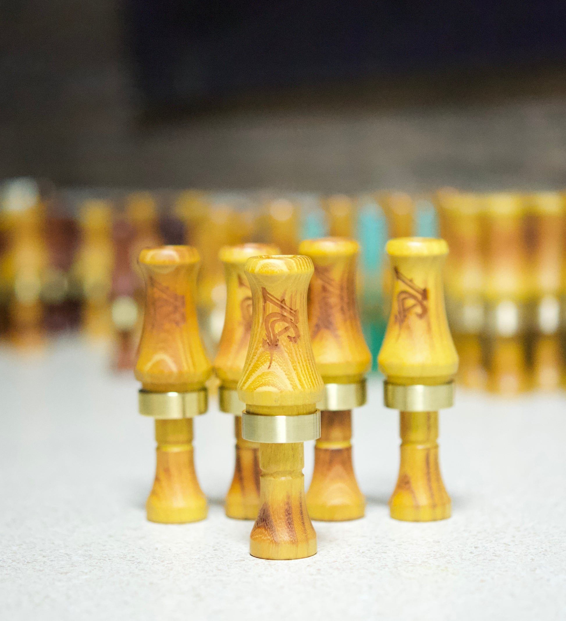 MP-9 stands for Mississippi Pool 9. This waterfowl hotspot is located in Wisconsin on the Mississippi River. Pool 9 of the Upper Mississippi River extends over 31 miles and over 35,000 acres. From sloughs to open water, the vast terrain requires a versatile duck call. The MP-9 provides just that. With an open bore and this super quick responsive call delivers what all waterfowlers are looking for. Along with an extremely aggressive ducky bottom end, this call is user friendly and easy to use. You do not have to be a champion caller to operate the MP-9. Although, if calling is your thing then this call is definitely for you. There is not a hen mallard sound the MP-9 can not make. The MP-9 is smaller than our original line up of calls. The MP-9 is a super aggressive call. From Pool 9 to rice fields and timber holes in Arkansas, the MP-9 delivers. Big flocks don't stand a chance against the MP-9. Give it a try, you won't be disappointed.